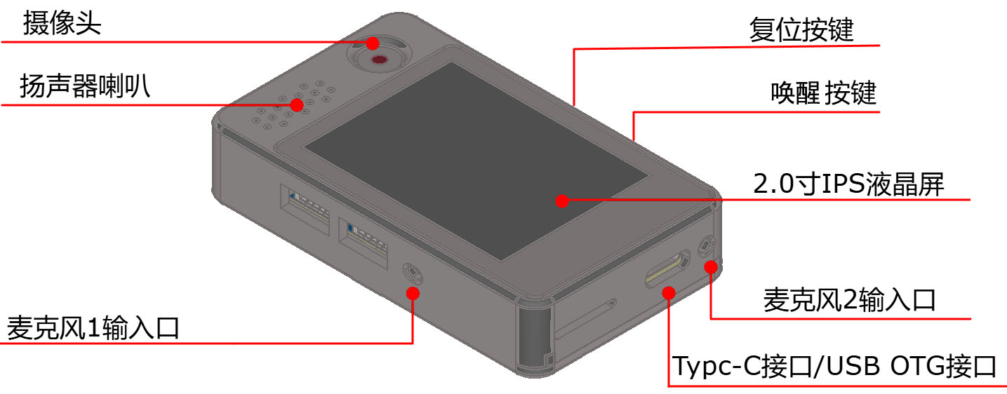 1. AI语音机器人外观说明如下: