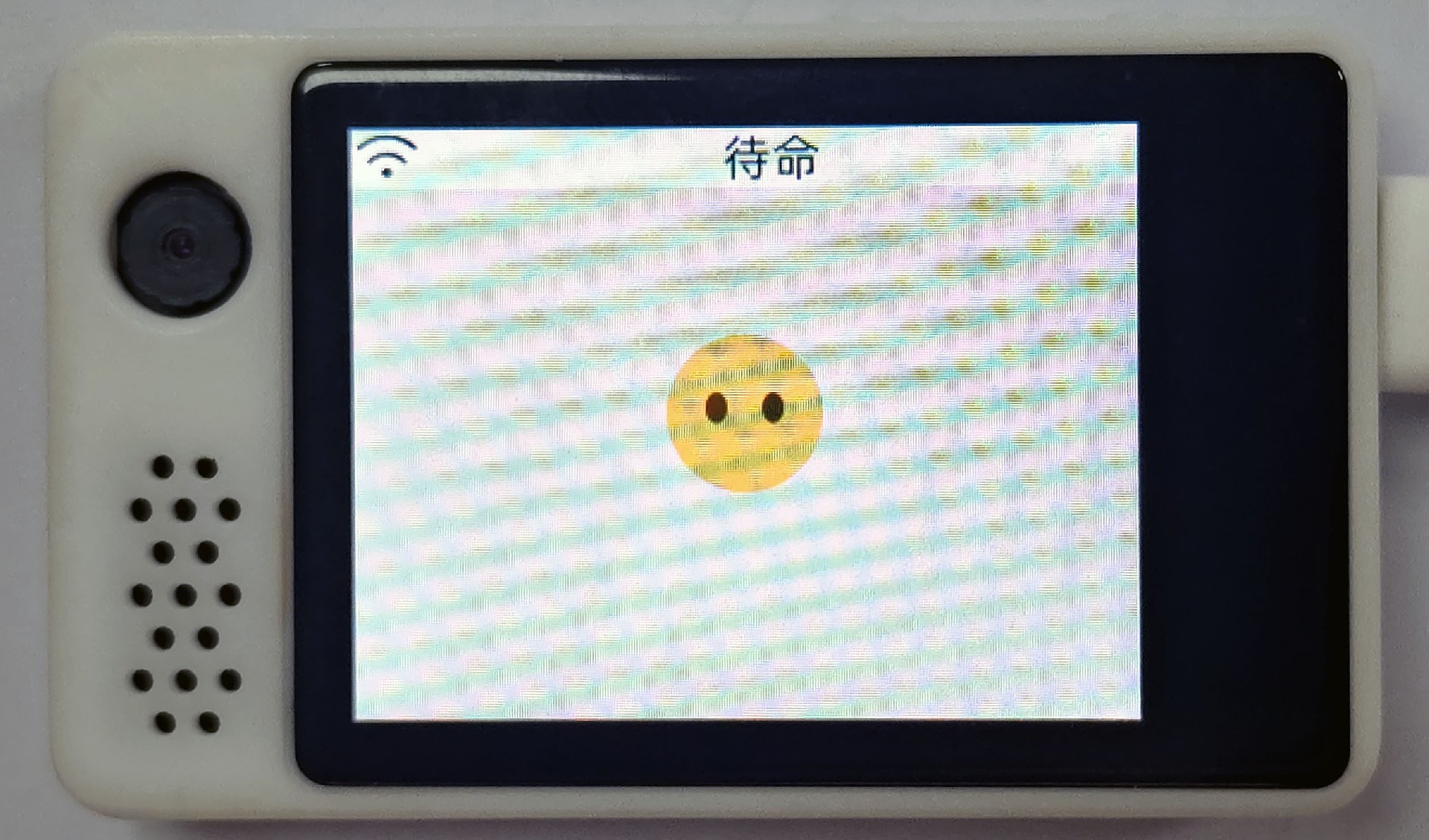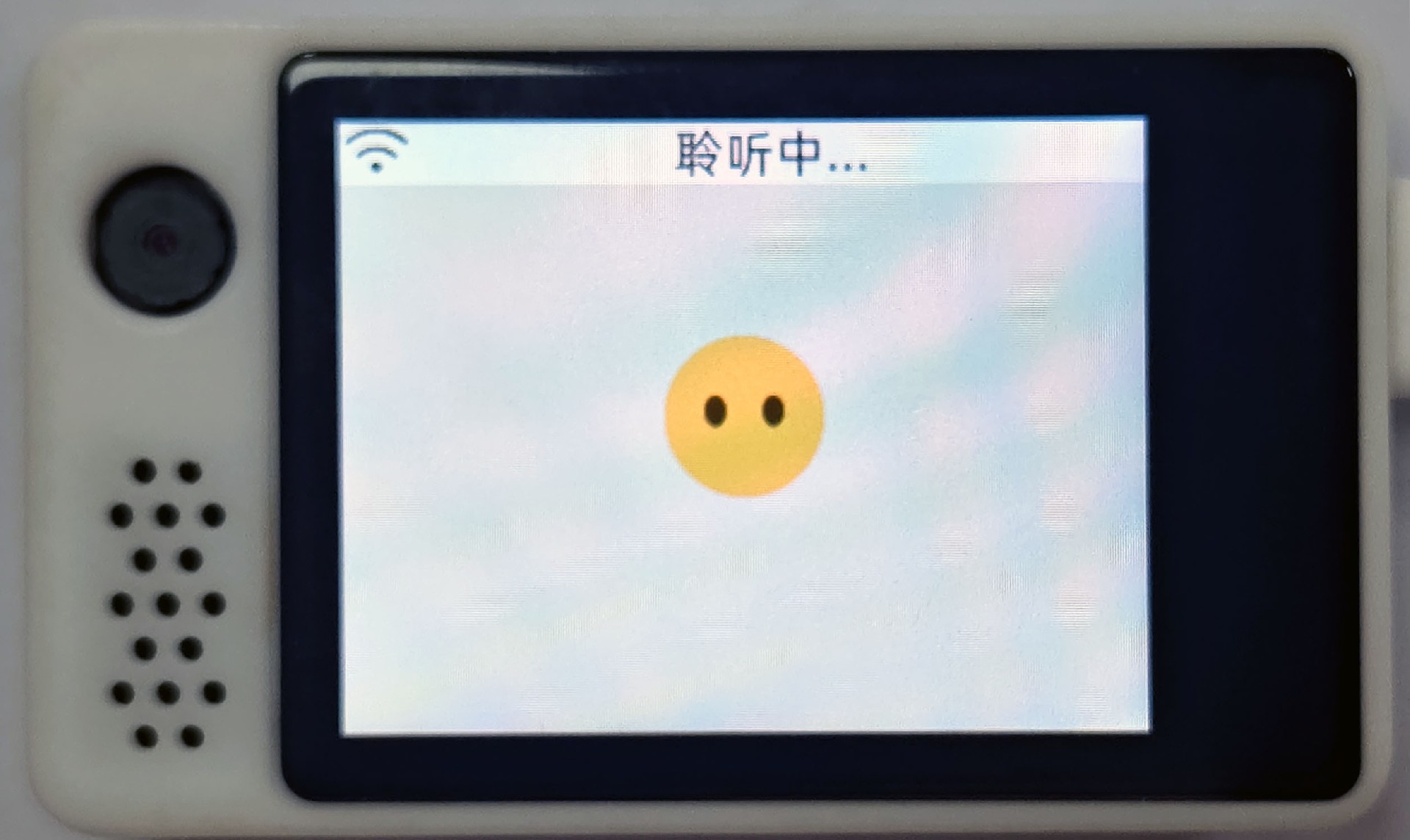 2. 若AI语音机器人未能链接附近的WIFI则自动进入配网模式。也可在开机时显示搜索WIFI时,按下唤醒按键(右上角)。同时会听到提示语音,设备出现如下界面;下面以WIFI-SSID:Xiaozhi-B3D9为例进行说明:
